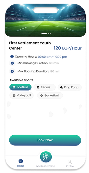 احجز ملعبك في أقرب مركز شباب أونلاين بسهولة وفي ثواني، من غير تعب أو انتظار.