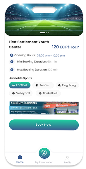 احجز ملعبك في أقرب مركز شباب أونلاين بسهولة وفي ثواني، من غير تعب أو انتظار.